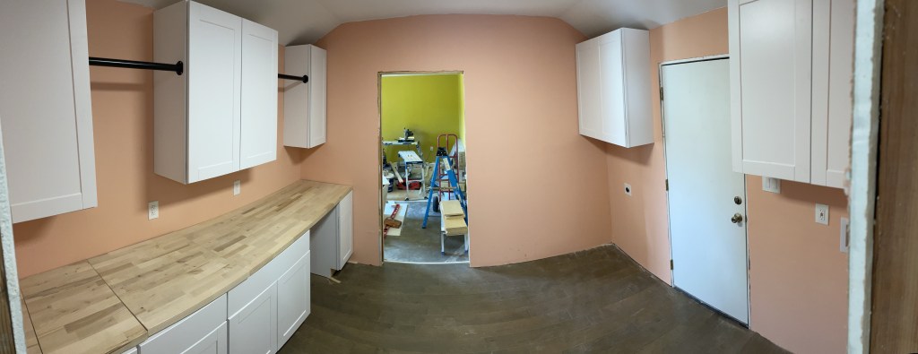 All of the cabinets are finally finished with exception of the bathroom and closet shelves.
