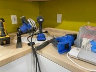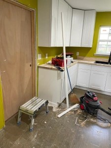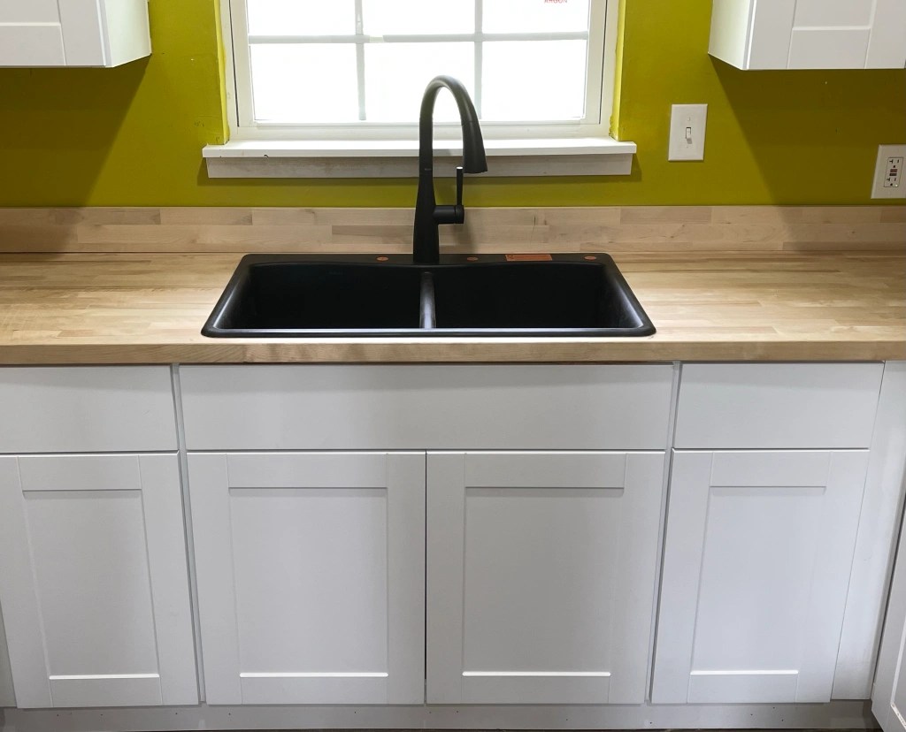 This last weekend we put in a kitchen sink, a door, and started putting up trim.
