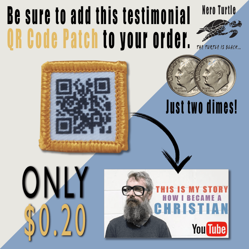 I also added a QR code patch that leads to a salvation video.